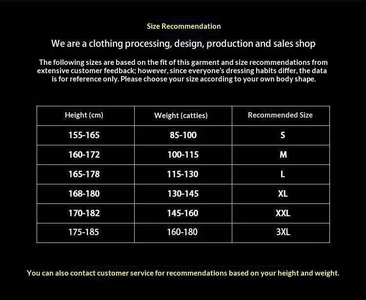 Size Information: Available in sizes M, L, XL, 2XL, 3XL (allow 1–3 cm tolerance)