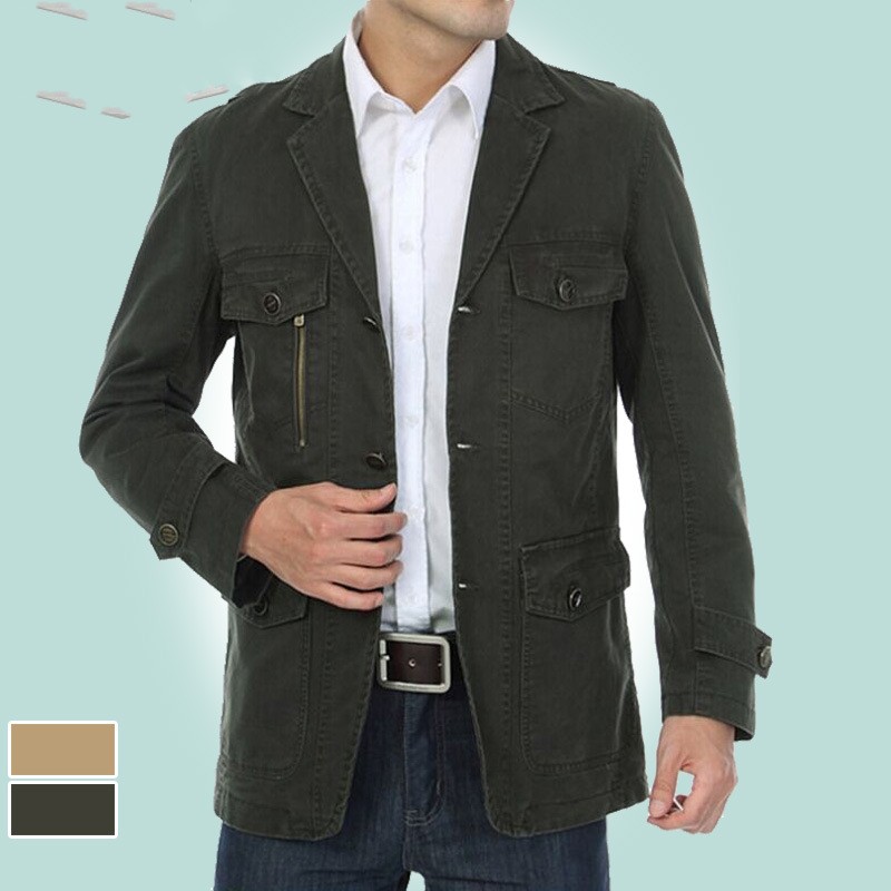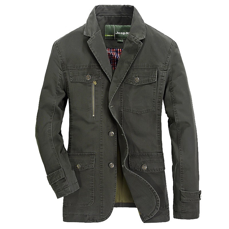 Men's Casual Suit Collar Multi-Pocket Loose Washed Jacket